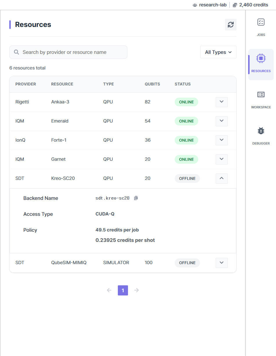 Resource (Resource Information): View a list of available QPUs and simulators along with their detailed specifications.