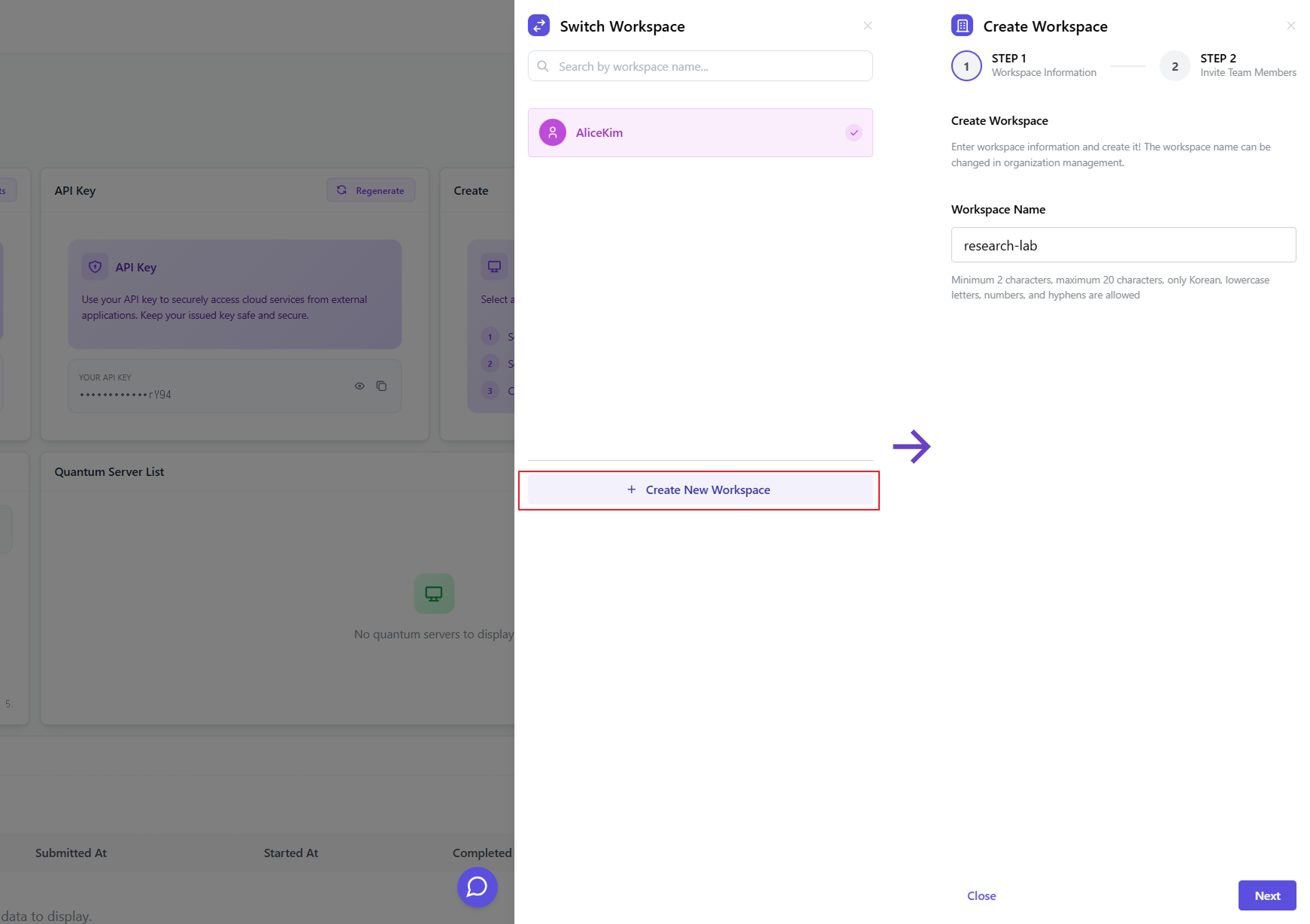 To use QuREKA's resources and SDKs, users must first obtain an API key. Click the [Generate API Key] button on the dashboard to issue your key.